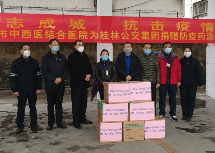 2月6日,市國資委副主任藍(lán)譽(yù)國、桂林市中西醫(yī)結(jié)合醫(yī)院副院長(zhǎng)馮麗平攜醫(yī)務(wù)部、藥學(xué)部等相關(guān)部門及人員來到公交集團(tuán),向公交集團(tuán)贈(zèng)送了一批新型冠狀病毒感染肺炎預(yù)防藥湯。 桂林市中西醫(yī)結(jié)合醫(yī)院又名...