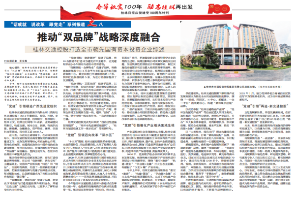 核心提示:桂林市交通投資控股集團有限公司以“雙品牌”戰(zhàn)略突出核心競爭力,創(chuàng)新將“桂林交通控股”公司品牌與“黨旗領(lǐng)航 活力交控”黨建品牌深度融合,并推動多項品牌創(chuàng)新升級發(fā)展?! 〗衲?,桂林交通...