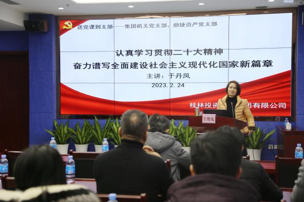 2月24日,集團公司黨委委員、監(jiān)事會主席、市國資委黨的二十大精神宣講團成員于丹鳳在集團公司總部開展黨的二十大精神專題黨課宣講,集團機關(guān)黨支部、鼎捷資產(chǎn)集團黨支部黨員、入黨積極分子參加此次宣講會...