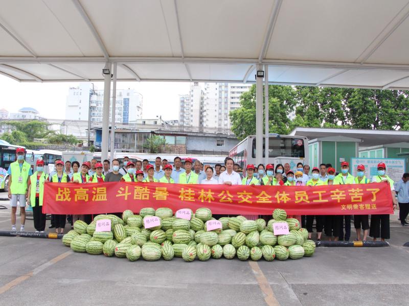 “大家辛苦了,這是我們文明乘客的一點(diǎn)心意。”8月5日,近20位文明乘客自發(fā)購買了一批新鮮西瓜送到公交駕駛員們手中,給堅(jiān)守在一線的駕駛員們送上了絲絲清涼。當(dāng)天,文明乘客們來到桂林交通控股公交集團(tuán)鐵...