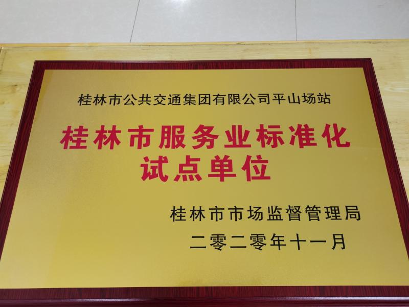4月22日,桂林市市級服務(wù)業(yè)標(biāo)準(zhǔn)化試點(diǎn)培訓(xùn)會議暨桂林市級第四批服務(wù)業(yè)標(biāo)準(zhǔn)化試點(diǎn)單位表彰大會召開,會議對桂林市18家服務(wù)業(yè)及社會事業(yè)領(lǐng)域標(biāo)準(zhǔn)化試點(diǎn)單位進(jìn)行了表彰,桂林交通控股公交集團(tuán)平山場站,...