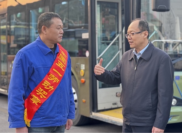 隨后,陸曉明慰問了桂林公交勞模代表龍鳳軍,詳細(xì)詢問了他的工作和生活狀況,并向龍鳳軍及桂林公交勞模們送上誠摯的問候和節(jié)日的祝福。陸曉明表示,勞模是公交行業(yè)的寶貴財(cái)富,他們的敬業(yè)精神和專業(yè)技能值得全體公交人學(xué)習(xí),希望桂林公交勞模繼續(xù)發(fā)揮榜樣引領(lǐng)與示范作用,激勵(lì)廣大職工在崗位上擔(dān)責(zé)盡職、兢兢業(yè)業(yè),助力企業(yè)服務(wù)質(zhì)量不斷提升。 桂林市交通運(yùn)輸局黨組書記、局長(zhǎng)黃峰,黨組成員、副局長(zhǎng)陳晞,桂林投資集團(tuán)副董事長(zhǎng)、總裁蔣東兵等陪同調(diào)研慰問。
