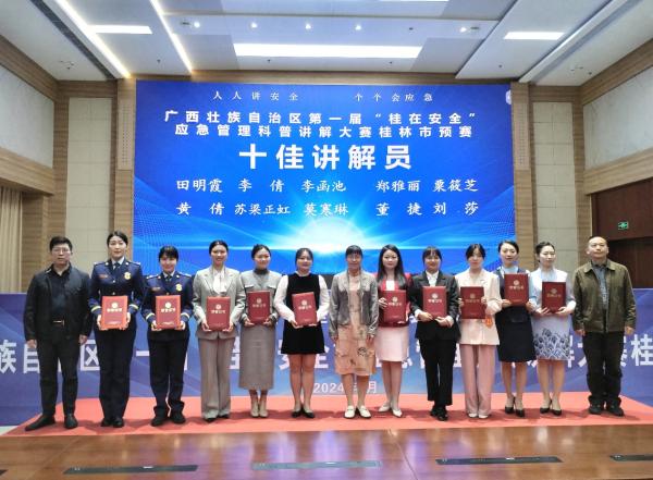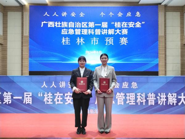 經(jīng)過集團(tuán)公司內(nèi)部評(píng)選和市國資委推薦,集團(tuán)公司下屬鼎晟能源公司田明霞、機(jī)場路公司劉莎參加自治區(qū)第一屆“桂在安全”應(yīng)急管理科普講解大賽桂林市預(yù)賽,并從全市21名參賽選手中脫穎而出,均獲得“十佳講解員”稱號(hào)。