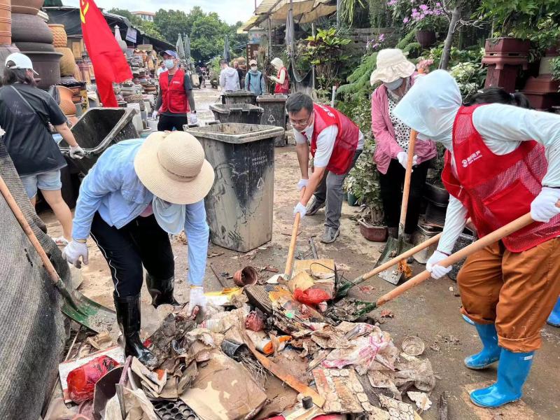 隨著洪水逐漸退去,鼎捷資產(chǎn)公司災(zāi)后重建工作緊張有序進(jìn)行,并著手開展災(zāi)后清理消殺工作。6月23日,鼎捷資產(chǎn)公司組織黨員及志愿者幫助花鳥市場開展垃圾清理工作,盡快恢復(fù)生產(chǎn)生活秩序,減少洪澇災(zāi)害帶來的損失。當(dāng)天,烈日當(dāng)空,垃圾在太陽下發(fā)出陣陣惡臭,容易滋生病菌。鼎捷資產(chǎn)公司黨員及志愿者們利用鐵鍬、掃把、徒手搬運(yùn)等勞動(dòng)清潔方式,將一條條通道上的垃圾進(jìn)行清理、疏通。在大家的努力下,以最快時(shí)間恢復(fù)了市場原貌,助力市場秩序恢復(fù)正常。