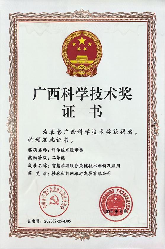 近日,自治區(qū)黨委、政府在南寧召開全區(qū)科技大會、廣西科學(xué)技術(shù)獎勵大會,揭曉了2023年度廣西科學(xué)技術(shù)獎獲獎成果名單。其中,桂林投資集團(tuán)桂林出行網(wǎng)旅游發(fā)展有限公司科技成果“智慧旅游服務(wù)關(guān)鍵技術(shù)創(chuàng)新及應(yīng)用”榮獲2023年度廣西科技進(jìn)步二等獎。