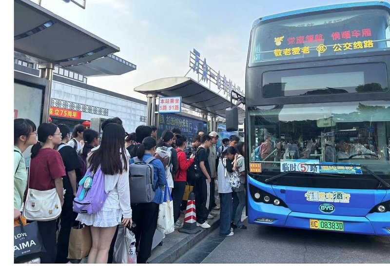 為保障國(guó)慶假日期間市民游客的出行需求,桂林軌道集團(tuán)通過(guò)增加公交車運(yùn)力、加密班次、開(kāi)通定制專線等多項(xiàng)舉措,高標(biāo)準(zhǔn)、高質(zhì)量、高效率完成節(jié)日期間出行保障任務(wù)。假日期間,桂林公交合理配置運(yùn)力資源,靈活調(diào)度車輛,較平日增加了10%的運(yùn)力投入,并安排了執(zhí)勤人員在各大高校、市中心、高鐵站等客流密集的站點(diǎn)引導(dǎo)乘客有序上下車,實(shí)時(shí)關(guān)注客流情況,做到科學(xué)、及時(shí)運(yùn)力調(diào)整,確保乘客不滯留。