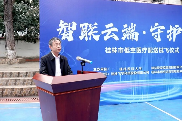 桂林市衛(wèi)健委副主任徐召霞、桂林醫(yī)科大學(xué)第二附屬醫(yī)院副院長(zhǎng)鄧立東、桂林投資集團(tuán)低空運(yùn)營(yíng)公司及桂林飛宇科技公司相關(guān)負(fù)責(zé)人出席試飛儀式。