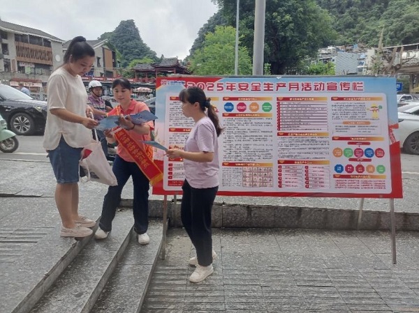 ▲陽朔山水公司在公共場所設立安全生產月活動宣傳欄,面向公眾宣傳安全知識。(照片拍攝:陸文彬)