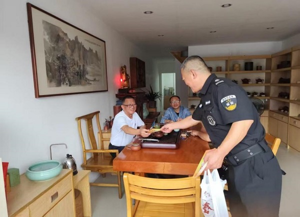▲鼎捷資產公司向物業(yè)租戶發(fā)放消防安全宣傳折頁,開展安全倡議活動。(照片拍攝:譚艷虎)