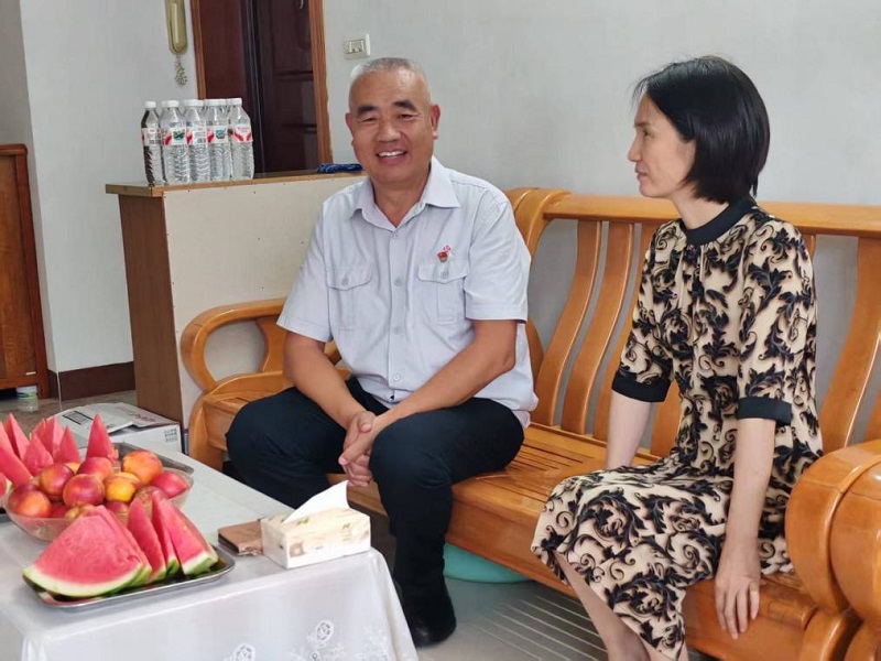 ▲于丹鳳慰問(wèn)黨員崔本鋼。方靜/攝