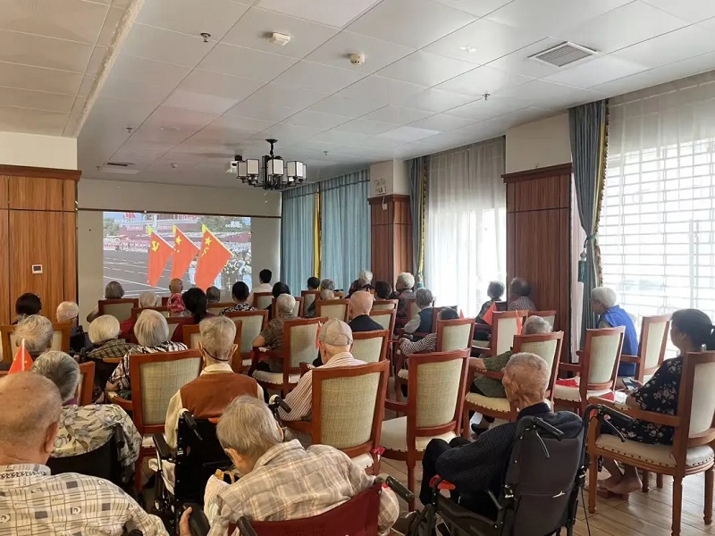 ▲鼎樂公司活力花園養(yǎng)老公寓組織收看大會實(shí)況轉(zhuǎn)播