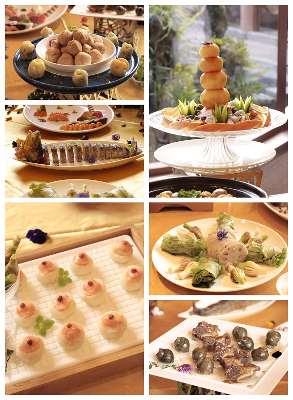 全魚釀、鮑魚釀、筍子釀、豆芽釀、羊肚菌釀……推廣展示活動中,溫德姆酒店團隊與桂林旅游學院團隊共同制作的“平樂十八釀宴席”,菜品造型精美、色香味俱全,一亮相就獲得了現(xiàn)場美食專家們的一致好評。