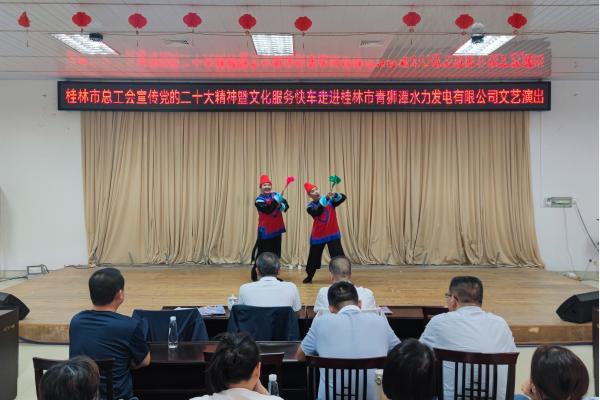 11月7日,鼎晟能源集團(tuán)青獅潭水力發(fā)電公司全體員工觀看了桂林市總工會學(xué)習(xí)黨的二十大精神暨“文化服務(wù)快車走基層”文藝演出,并參與“黨的二十大精神及安全生產(chǎn)知識競賽”,整場活動高潮迭起,受到員工們的歡迎和好評。