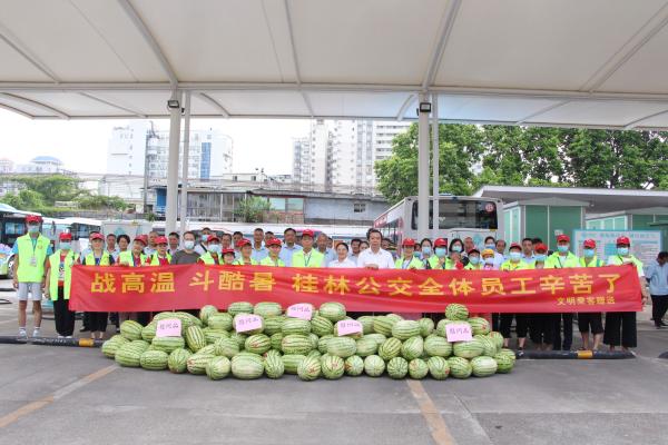 當天,文明乘客們來到桂林交通控股公交集團鐵西車場,看望、慰問公交一線駕駛員,感謝公交員工的辛勤付出。蔡就文是文明乘客種的一員,慰問中他說,作為桂林市民,給駕駛員送來清涼慰問品是盡自己的綿薄之力,希望公交員工做好防暑降溫工作,為市民乘客提供安全、便捷、舒適的出行服務。