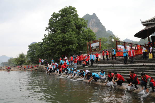 為深入貫徹落實習(xí)近平總書記考察漓江時的重要指示精神,踐行“綠水青山就是金山銀山”的生態(tài)文明理念,保護好桂林山水,自2022年起每年4月25日設(shè)為“漓江保護日”。4月25日首個“漓江保護日”,陽朔縣高田鎮(zhèn)人民政府、陽朔縣遇龍河公司、陽朔山水交運公司三方聯(lián)動,在遇龍河畔開展“漓江保護日,遇龍河在行動”主題活動,相關(guān)單位及各界人士100余人參加活動。