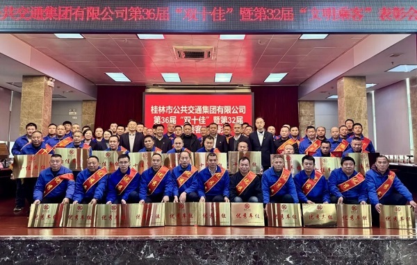 12 月 26 日,桂林投資集團(tuán)桂林公交第36屆“雙十佳”暨第32屆“文明乘客”表彰大會(huì)在桂林公交鐵西車場(chǎng)舉行。市總工會(huì)、市文明辦、市國(guó)資委、市交通運(yùn)輸局、桂林投資集團(tuán)、市融媒體中心等單位領(lǐng)導(dǎo)出席表彰活動(dòng)。