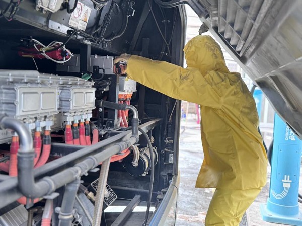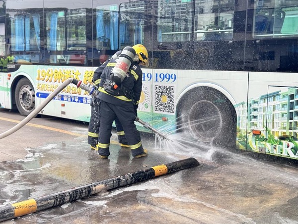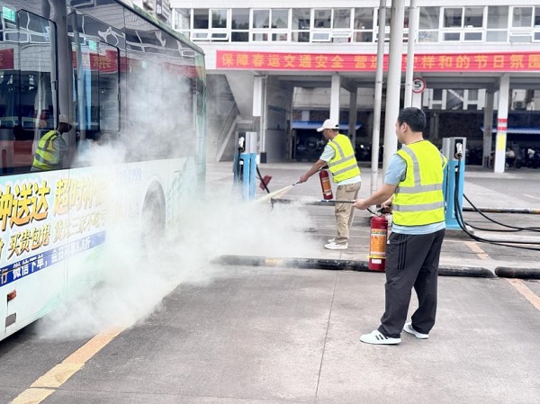近日,桂林公交鐵西場站警報驟響,一輛正在充電的純電動公交車突發(fā)“火情”,現(xiàn)場濃煙四起。這是桂林投資集團公交公司部門開展的新能源車輛火災(zāi)事故應(yīng)急處置演練現(xiàn)場,通過全要素實戰(zhàn)模擬錘煉應(yīng)急救援能力。