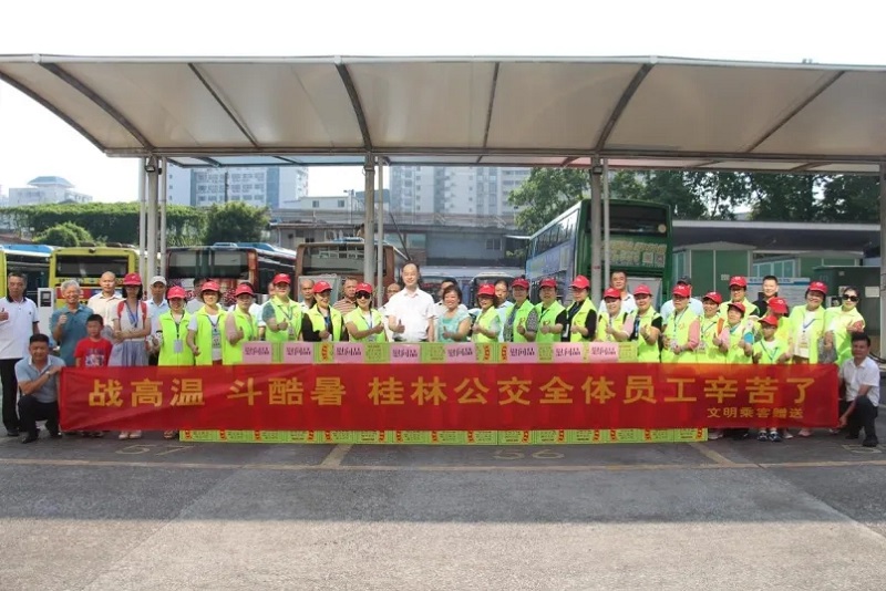 8月13日上午,桂林投資集團(tuán)公交鐵西場(chǎng)站洋溢著濃濃溫情,一群佩戴"文明乘客"綬帶的市民自發(fā)來(lái)到這里,將防暑降溫飲品送到高溫下堅(jiān)守崗位的公交駕駛員手中。