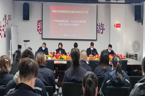 12月10日,鼎翔旅游召開全體管理人員會議,組織員工認(rèn)真學(xué)習(xí)《員工行為規(guī)范》及相關(guān)文件,加強企業(yè)管理、加強制度建設(shè)。