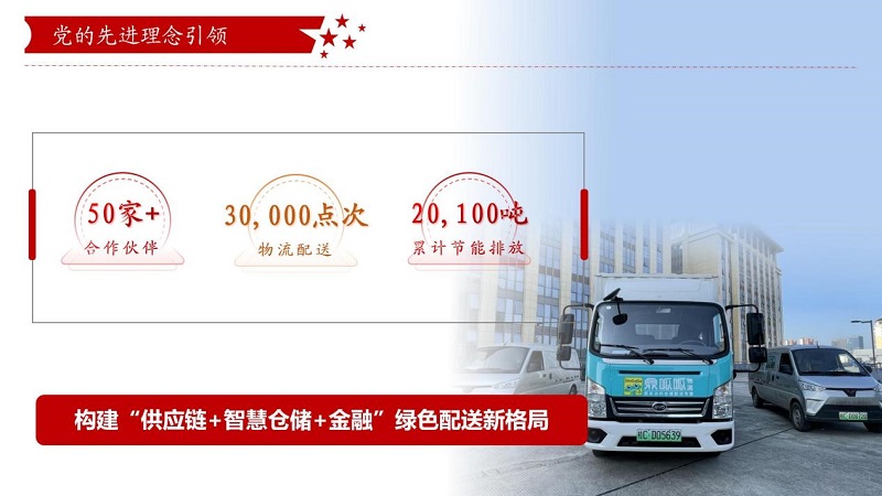 鼎和晟供應(yīng)鏈黨支部深刻認識創(chuàng)新驅(qū)動發(fā)展的重要性,積極響應(yīng)國家“雙碳”目標,以釘釘子的精神打好改革攻堅戰(zhàn),將綠色發(fā)展理念融入企業(yè)戰(zhàn)略,算“經(jīng)濟賬”的同時還算“環(huán)保賬”,為經(jīng)銷商提供定制化綠色服務(wù)。截至目前,合作伙伴超50家,配送點次近3萬次,上半年累計節(jié)能排放約2.01萬噸,構(gòu)建起綠色配送新格局。